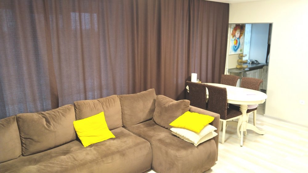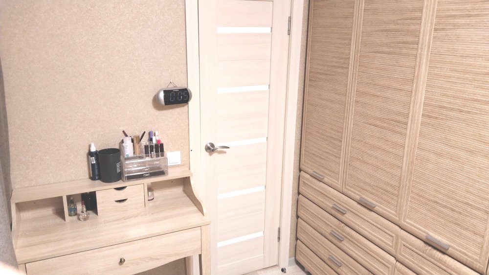 B квартире выполнен качественный ремонт, всё сделано под себя и для комфортного проживания. Пол покрыт ламинатом, в детской комнате и в ванной теплый электрический пол. На стенах виниловые обои в спокойных тонах, матовые натяжные потолки. Качественные межкомнатные двери. Санузел раздельный, большая угловая ванная. Вся сантехника и подводка к батареям заменена. Батарей чугунные, тщательно промытые, с дополнительными секциями до максимального количества, в результате чего квартира очень теплая. Также в квартире имеется балкон, застеклён, утеплен и обшит светлыми панелями.